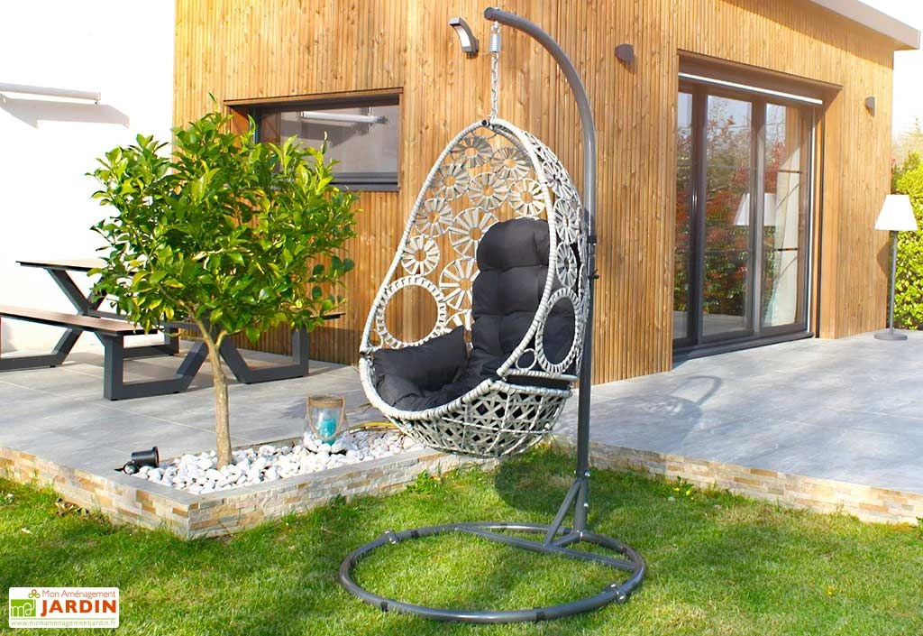 Livrée à monter, la Samoa affiche un diamètre de 115 cm, pour 210 cm de haut. Des coussins couleur gris anthracite sont également inclus, pour un confort optimal.