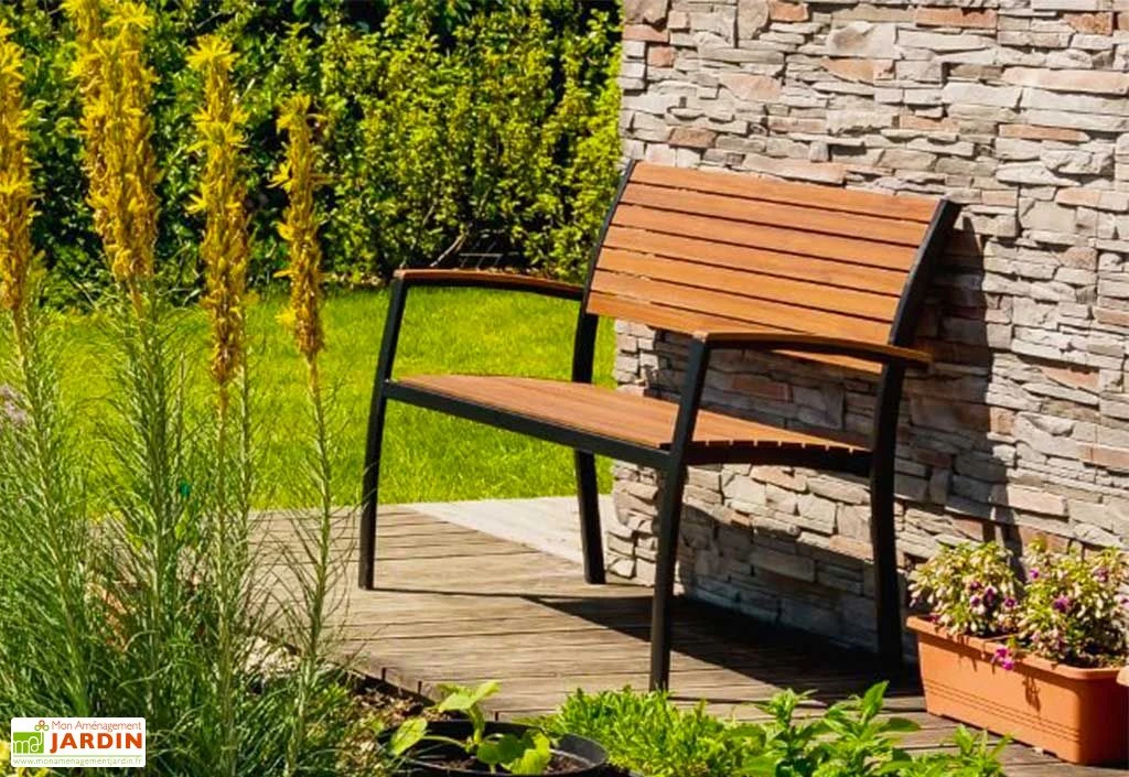 Ce banc en bois dispose donc d’une structure en aluminium, un matériau qui ne craint pas la rouille, même sans traitement. Son assise et son dossier sont pour leur part fabriqués en eucalyptus, une essence naturellement protégée contre l’humidité, les champignons et autres insectes qui pourraient le détériorer. Notez enfin que le bois utilisé est certifié FSC. Il provient donc de forêts gérées de manière durable.