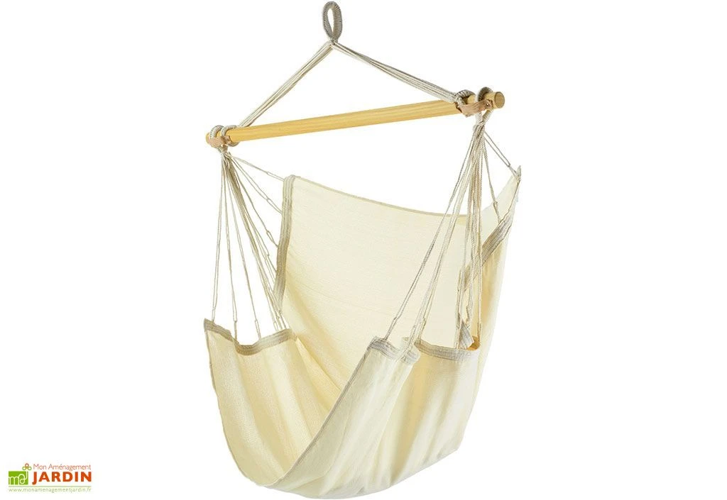 Ce hamac à pendre est parfait pour profiter d’une sieste au soleil, ou pour être installé dans une chambre ou un salon. Il apporte une touche cosy et relaxante et sa couleur couleur écrue se fond dans n’importe quel environnement. La barre en bois maintenant la toile mesure 110 cm.