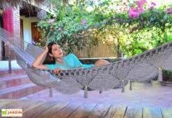 Conçue de manière artisanale au Nicaragua, cette chaise hamac est fabriquée en coton tissé à la main, à partir de mailles à trois fils pour plus de solidité et un confort d’utilisation accru. Lavable à la main, la toile de ce siège suspendu vous accompagnera dans vos moments de détente durant de nombreuses années !