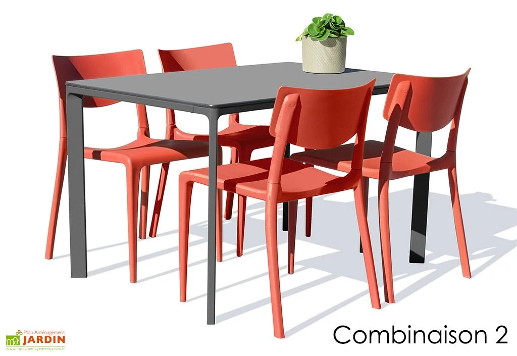 - Combinaison 2 : La table gris anthracite et ses 4 chaises rouge brique