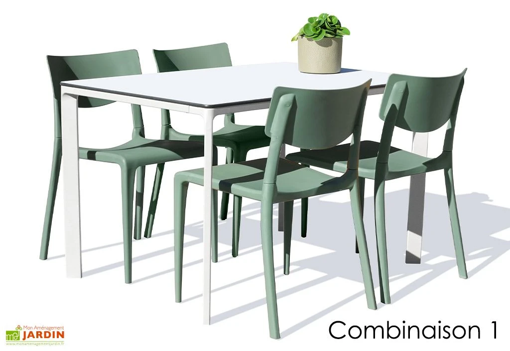 - Combinaison 1 : La table blanche et ses 4 chaises vertes
