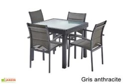 Le salon de jardin de la marque Wilsa est composé d’une table carrée pouvant accueillir 8 personnes et de 8 chaises. La table mesure 140 cm de longueur et de largeur pour une hauteur de 75 cm. Les chaises mesurent chacune 47 cm de largeur, 42 cm de profondeur d’assise et 89 cm de hauteur. L’ensemble pèse 94 kg.