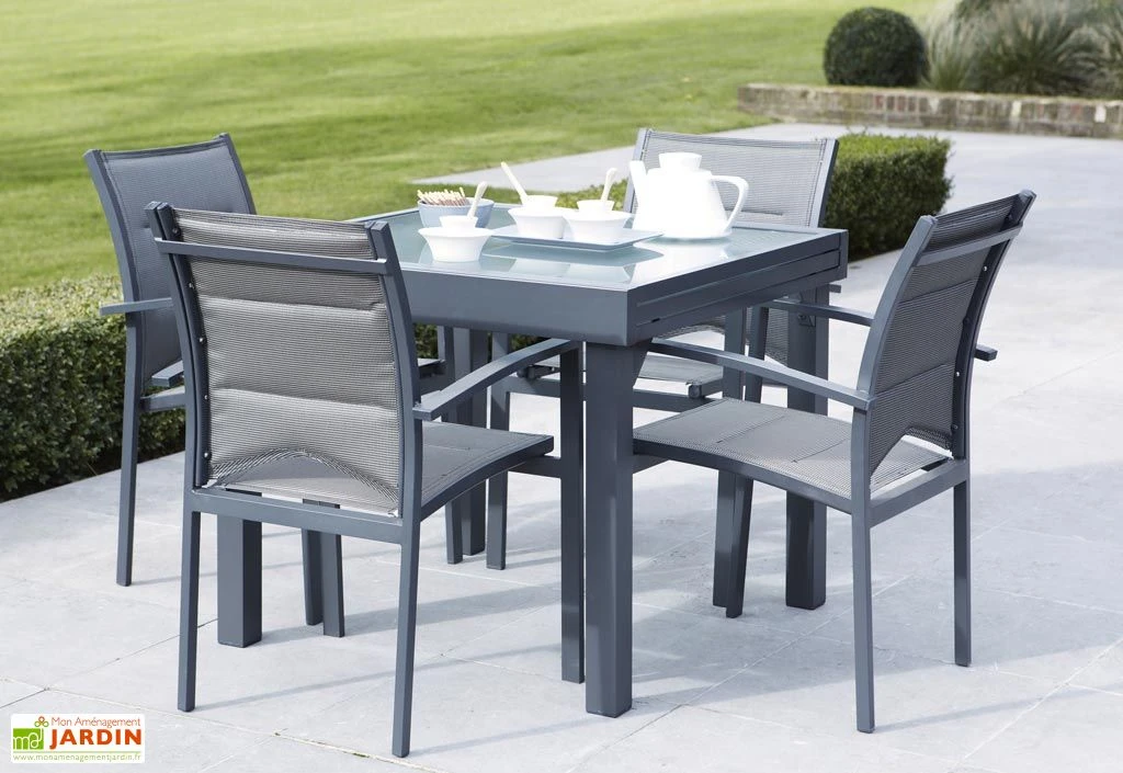 Salon De Jardin Modulo : Table Extensible + 4 Fauteuils Gris