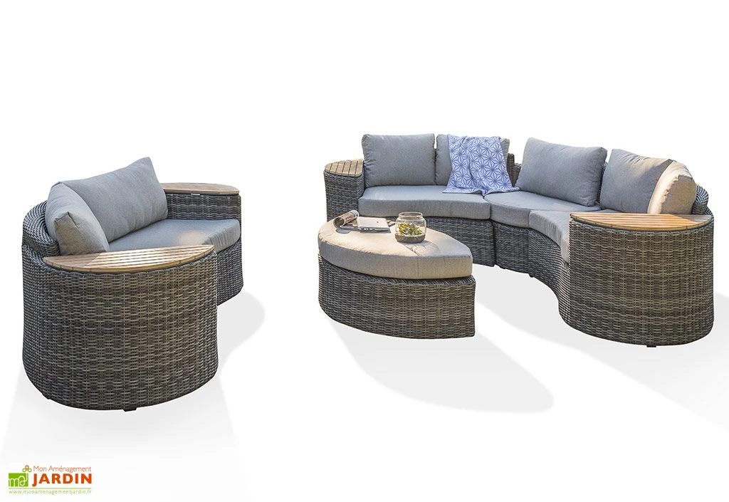 Les différents modules du salon de jardin s’assemblent les uns avec les autres pour former un très grand canapé 5 places par exemple. Ils s’emboitent parfaitement permettant également d’être compact et de prendre peu de place lorsque vous ne vous en servez pas.