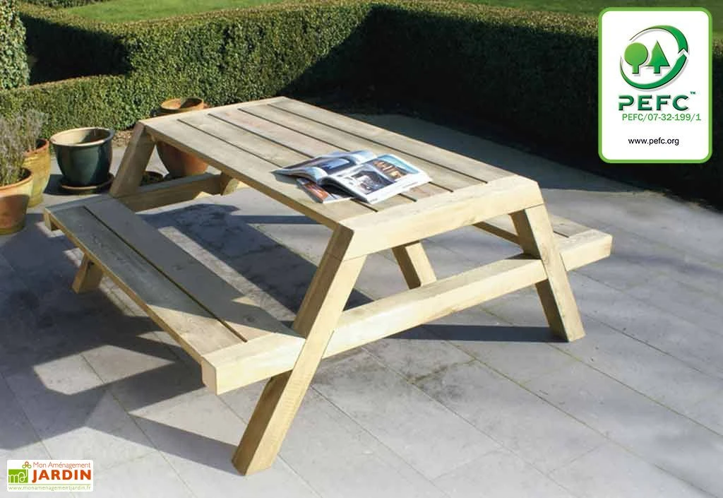 Votre table de pique-nique Clipper 6 de chez Gardival en Pin de l’extrĂȘme nord de l’Europe est certifiĂ©e PEFC et traitĂ©e ISP (traitement autoclave classe 4). La table de section 90 x 90 mm est assemblĂ©e de façon traditionnelle avec un systĂšme de tenons et mortaises. La table de pique-nique mesure 1,70 x 1,70 m pour une hauteur de 0,75 m. La largeur du plateau est de 75 cm et celle des bancs est de 30 cm. Design et Ă©lĂ©gante avec des lignes Ă©purĂ©es, la table sera en harmonie dans votre jardin. IdĂ©ale pour recevoir, ce mobilier de jardin peut contenir jusque 6 couverts. La table de jardin Gardival est livrĂ©e prĂ©-montĂ©e avec une notice de montage dĂ©taillĂ©e. La table de pique-nique est garantie 10 ans contre le pourrissement et l’attaque des insectes. Le prix volume est applicable Ă partir de 12 tables puis par multiple de 4 tables.