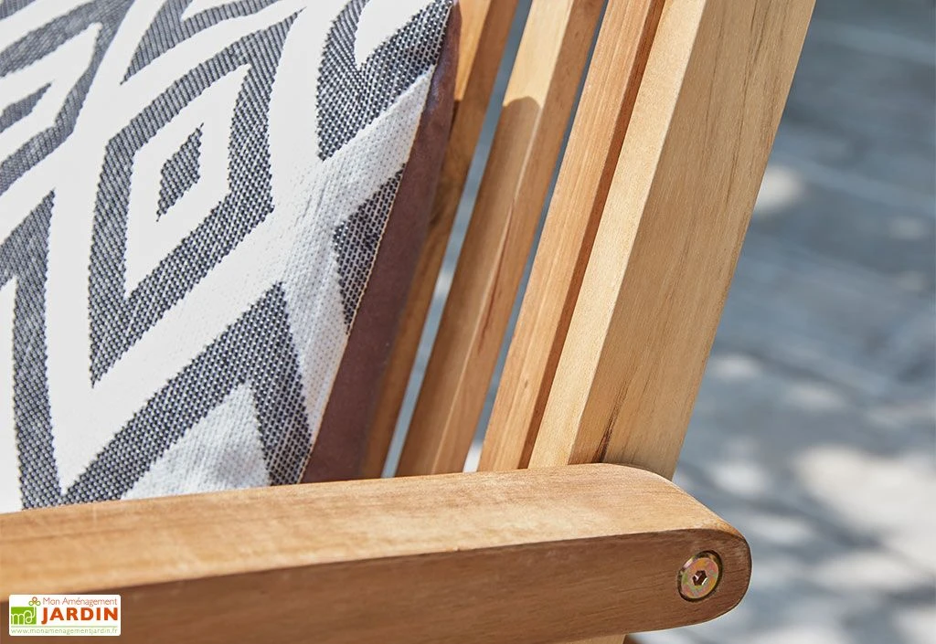 Le transat de chez Wilsa est idéal pour profiter du soleil dès le retour des beaux jours. Il est entièrement fabriqué en bois d’acacia certifié FSC, c’est-à-dire que le bois provient de forêts gérées dans le respect de l’environnement. Afin d’éviter que le bois ne grise dans le temps, il est conseillé de l’huiler une fois par an.